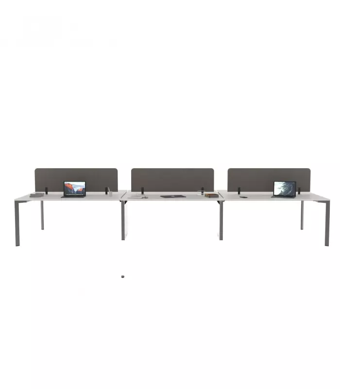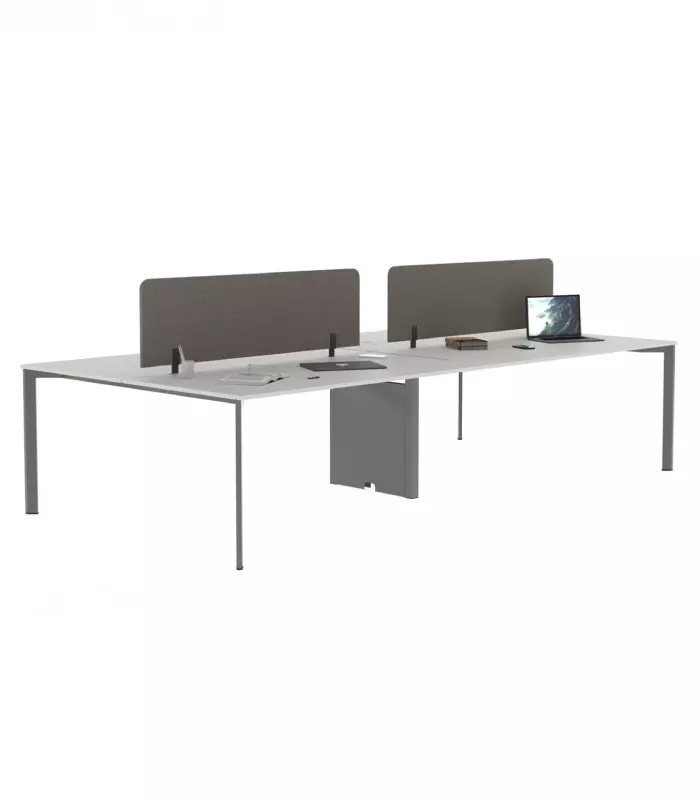 Ürün Özellikleri ; Masa tablası 30 mm melamindir, kenarlar 2 mm PVC bantlıdır. Ayaklar 42 mm çapında, 1.5 mm kalınlığında çelik çekme borudur. Ayakların birbirine bağlantısı alüminyum enjeksiyon kalıplarda şekillendirilmiş bağlantı aparatları ile sağlanmaktadır. İki ayak arasında kablo taşıma görevi gören teleskobik travers bulunmaktadır.
